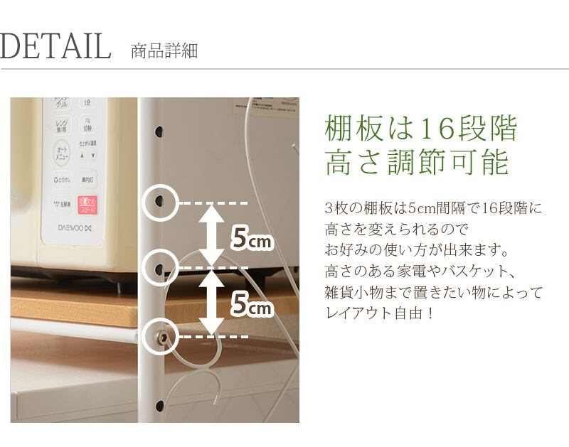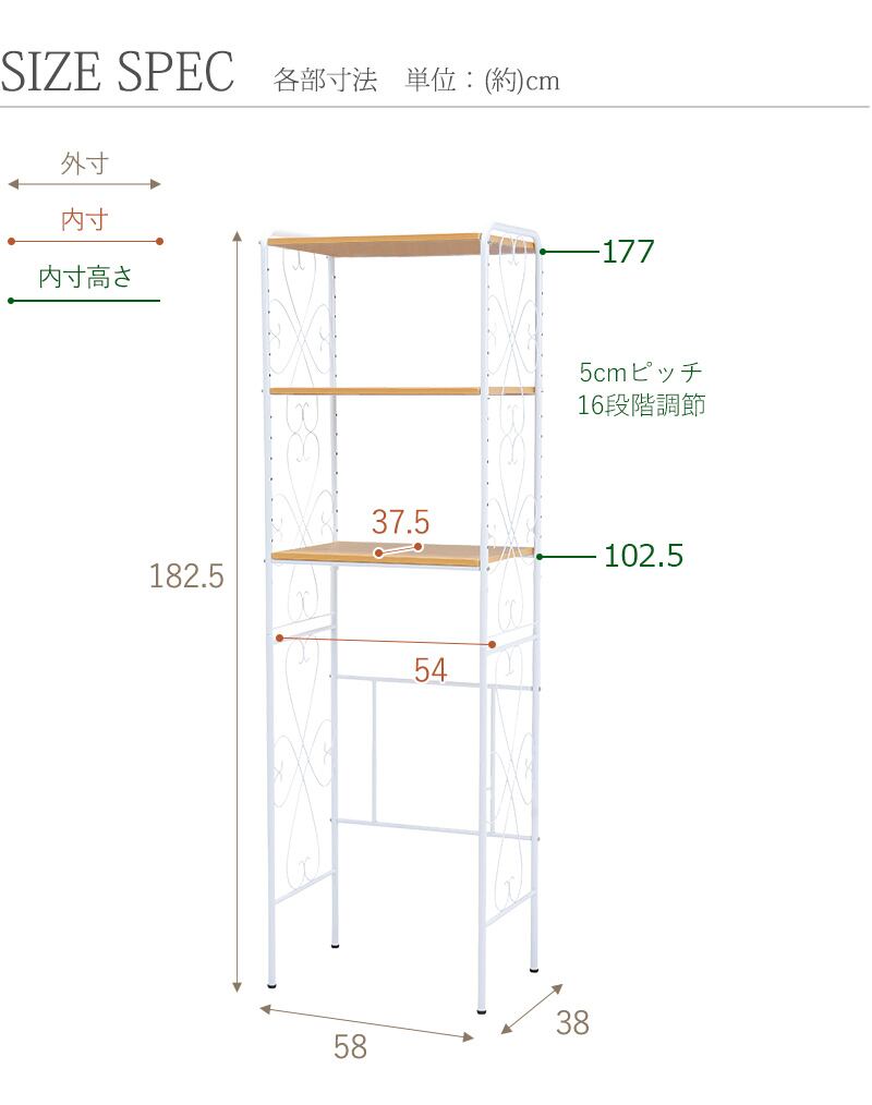 内寸及び補足説明 ■可動棚:3枚(5cmピッチ16段階)