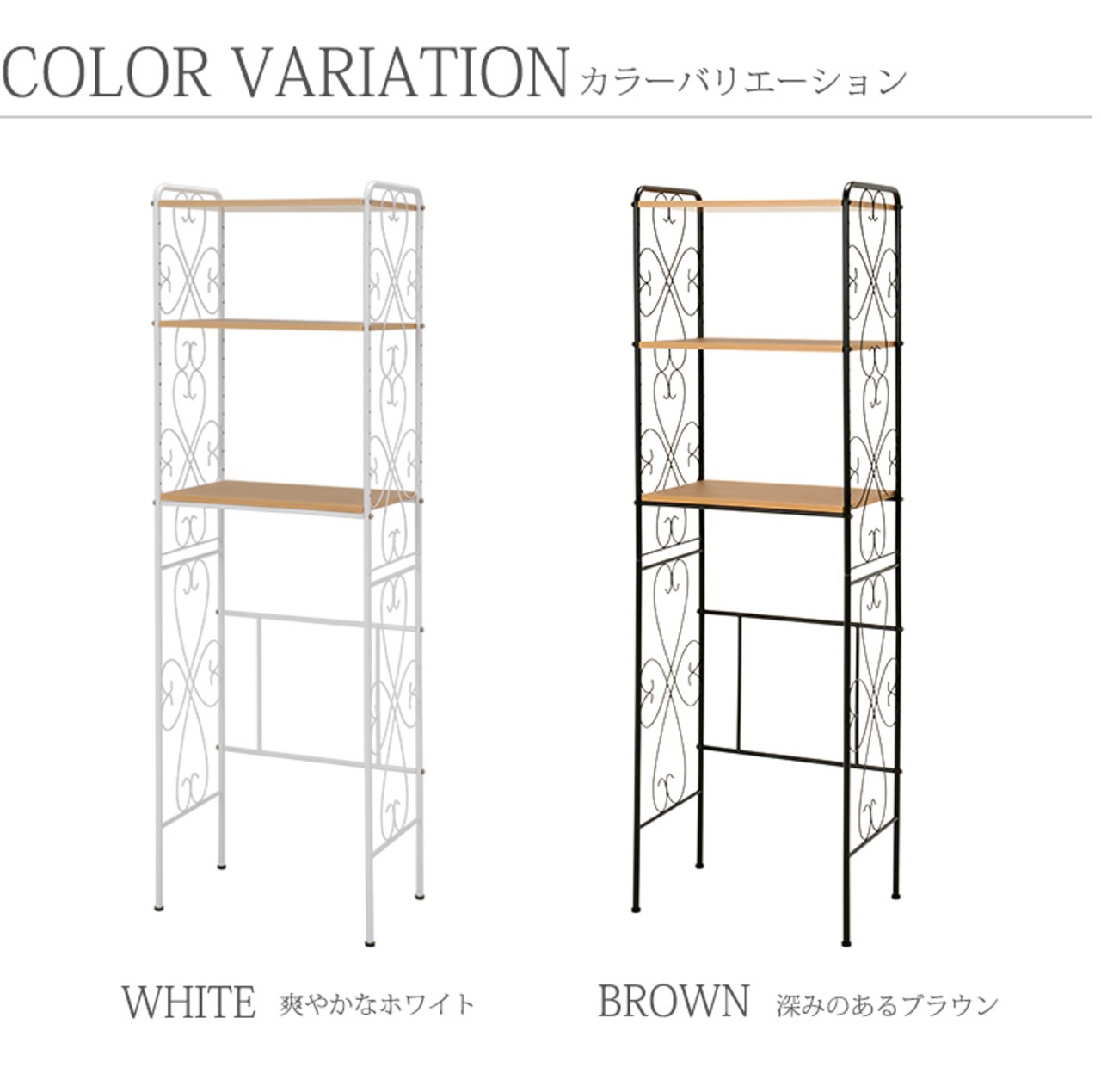 アイアンの曲線がエレガントで、冷蔵庫の上を有効活用できる冷蔵庫ラック。