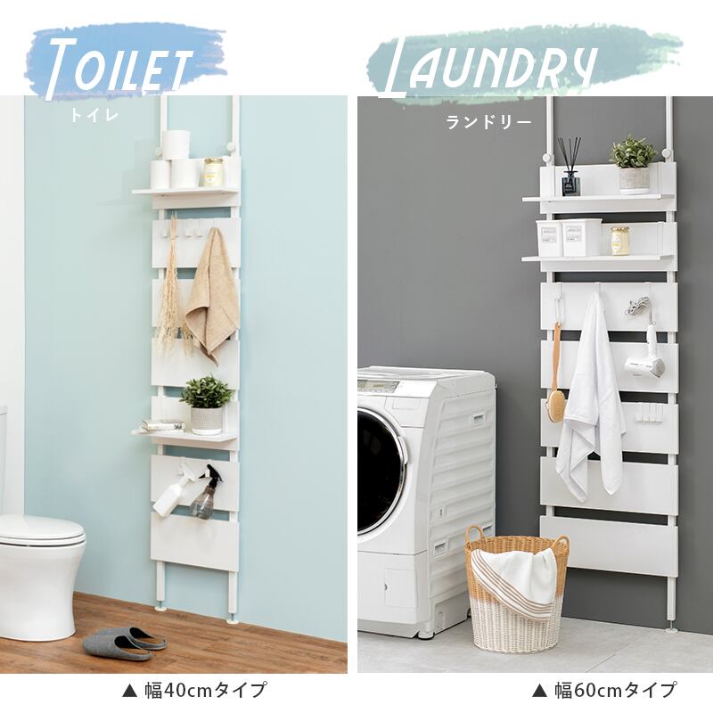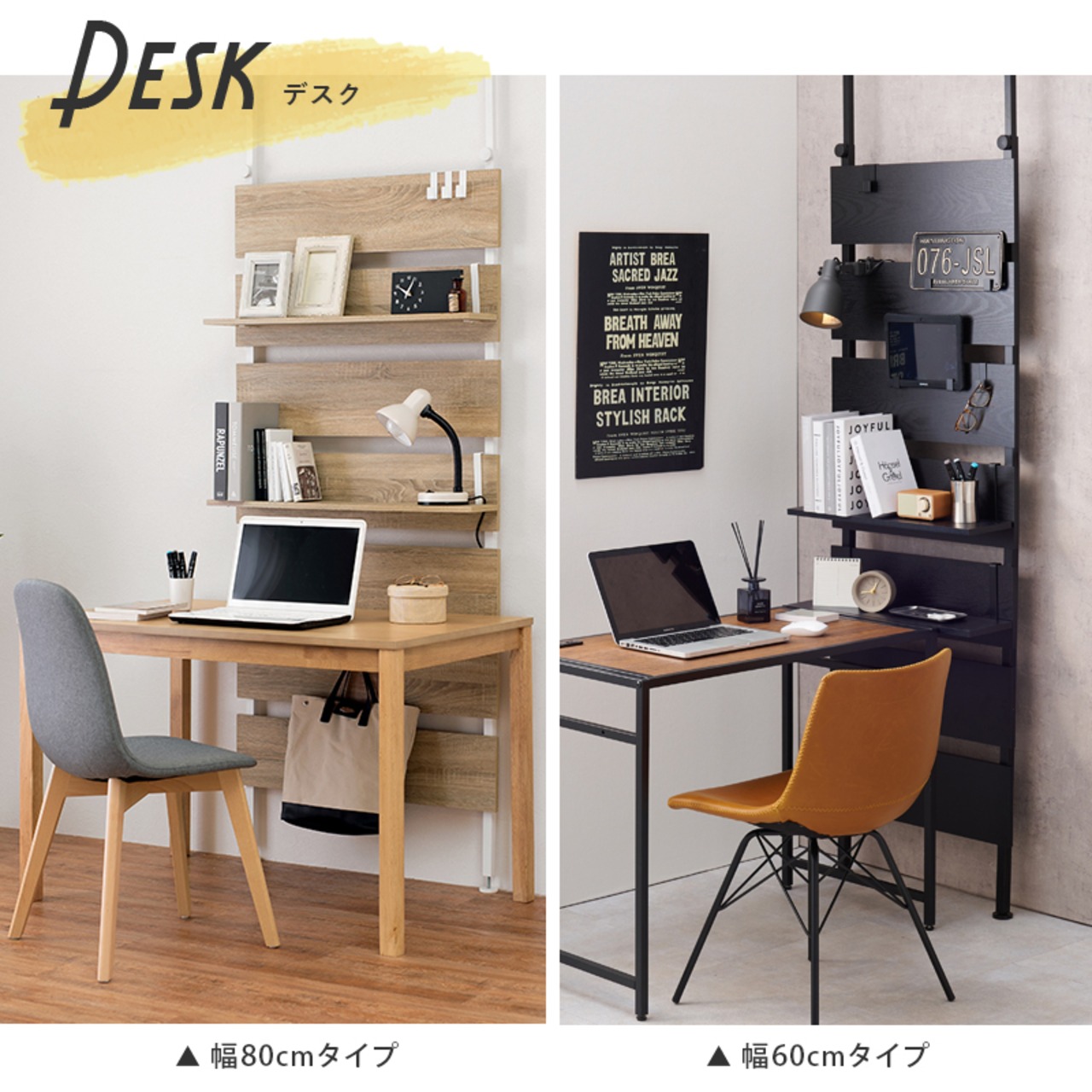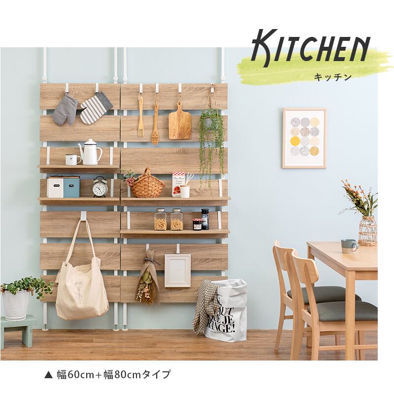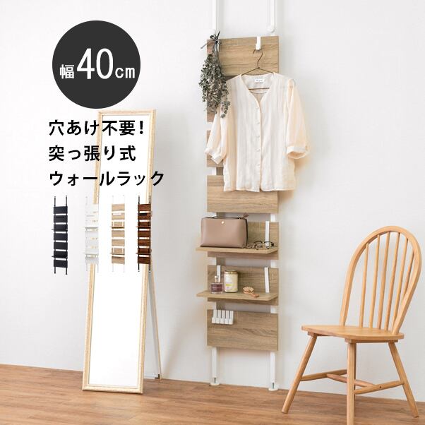 お部屋のいろいろな場所に設置できる突っ張り式ラック。パーテーションや間仕切りとしても活躍します。幅40cmタイプ