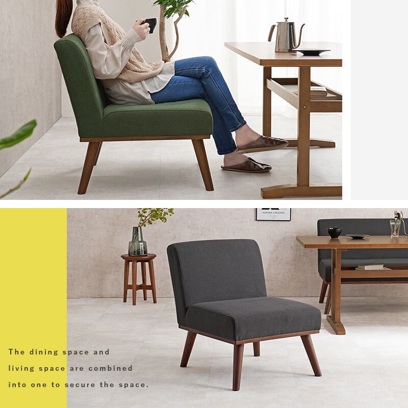 通常より少しロータイプに仕上げたダイニングソファ。1人掛け