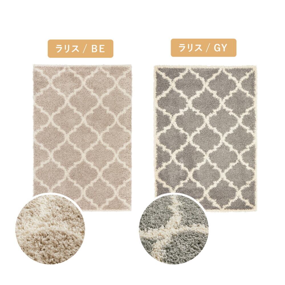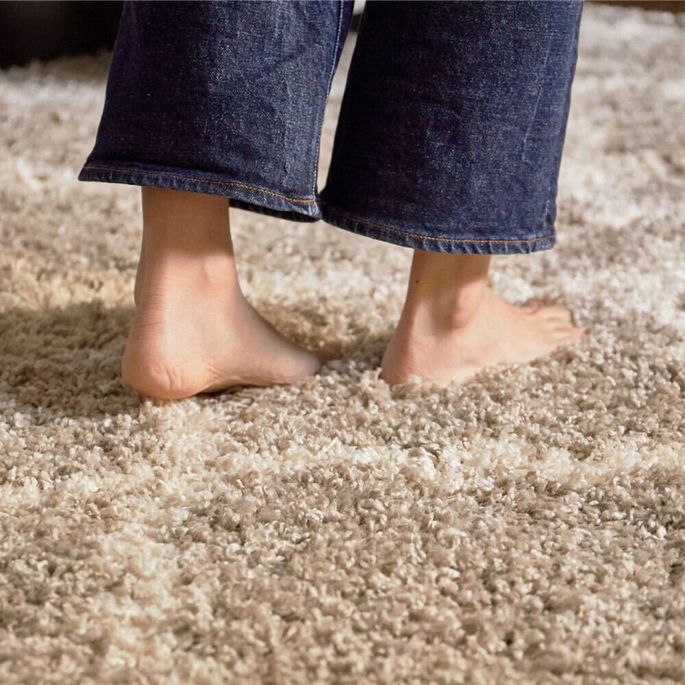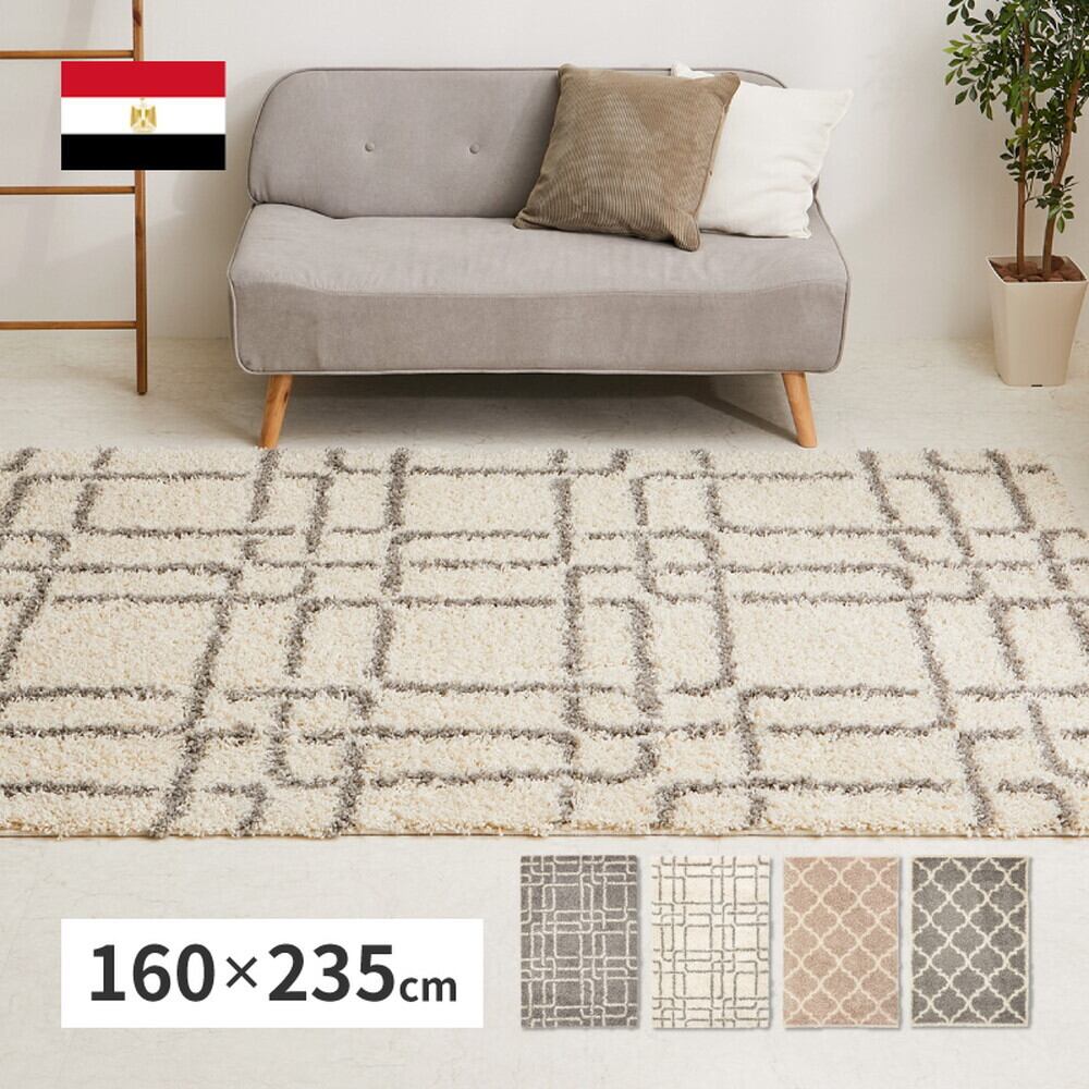 エジプト製のウィルトン織シャギーラグ。おしゃれなモダン柄とナチュラルなカラーでどんなインテリアにも合わせやすいデザインです。毛足が長くボリュームがあり、おもわず寝転びたくなるような心地良さの、ふわふわとやわらかな肌触り。また、ウィルトンラグはパイルの密度が高く耐久性に優れ、お気に入りのラグを長く使いたい方にもおすすめです。