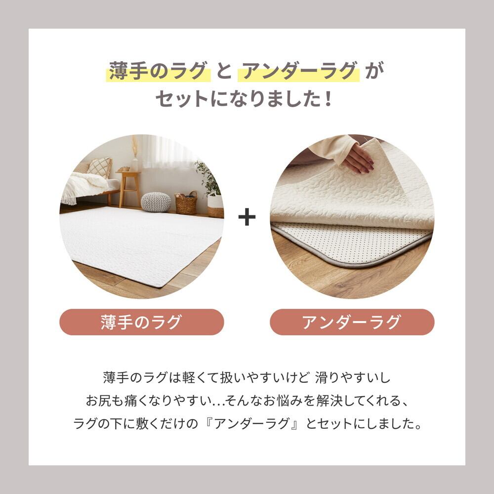 ラグの下に敷くアンダーラグをセットにしました!一緒に使うことで、薄手のラグでもふっくらとしたボリューム感が味わえます。